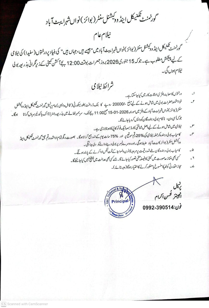 Auction Notice of Eucalyptus (Safaida) Trees – Government Technical & Vocational Centre (B) Abbottabadby adminJanuary 1, 2026January 1, 2026